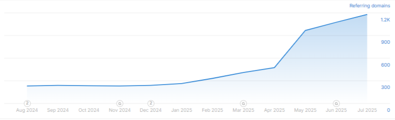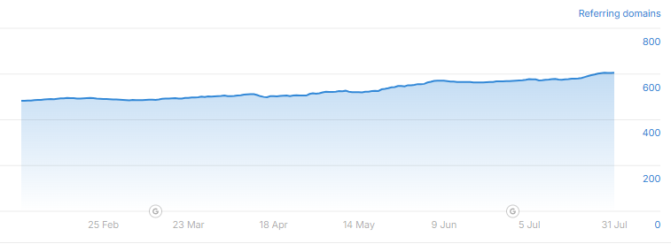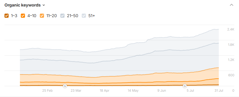 The number of ranking organic keywords increased from 1,789 in February to 2,755 in July—a 53.99% growth within six months.