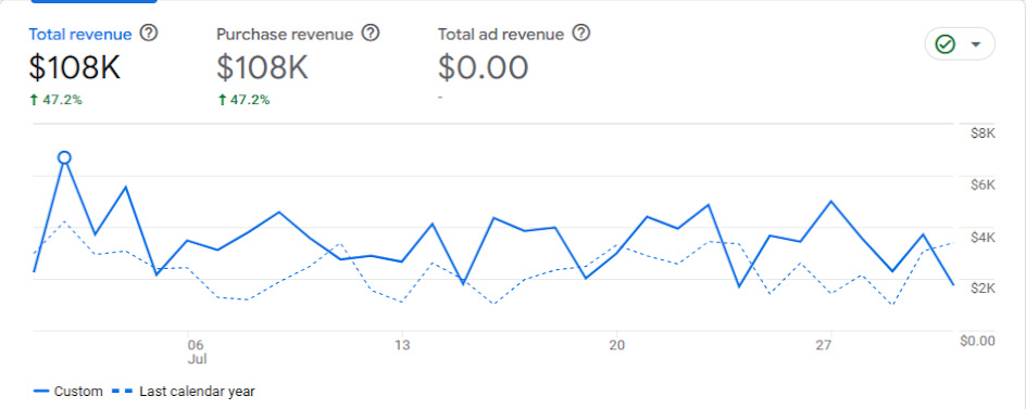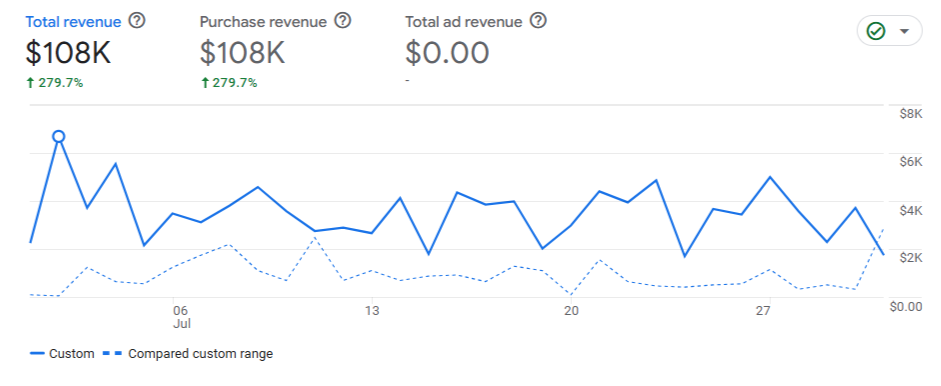 Organic revenue increased from $28,540.74 in Jan'25 to $108,375.97 in July'25 —a 279.73% increase in 6 Months.
